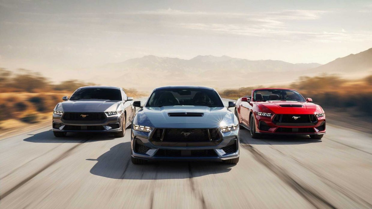 Ford Mustang 2024 года дебютировал в сентябре прошлого года с обновленным 2,3-литровым двигателем EcoBoost с турбонаддувом, доступным двигателем V8 и большим технологическим обновлением по сравнению с предыдущей моделью. Среди недавно представленных технологий — двухэкранная приборная панель с информационно-развлекательной системой SYNC4, программное обеспечение Unreal Engine и новая функция, которую Ford называет Remote Rev. Модели V8 с автоматической коробкой передач и варианты Ford Mustang 2.3 EcoBoost с Ford Active Exhaust.