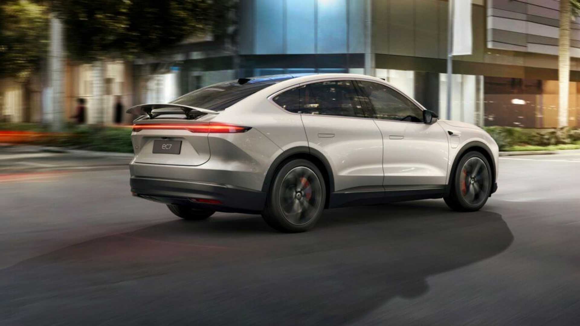 Начнем с дизайна. Автомобиль выглядит именно так, как вы, вероятно, ожидаете: тот же дизайн передней части, что и у EL7, в сочетании с наклонной линией крыши и более длинным задним свесом. EC7 имеет длину 195,6 дюймов (4968 мм), ширину 77,7 дюймов (1974 мм) и высоту 67,5 дюймов (1714 мм) и колесную базу 116,5 дюймов (2960 мм). Однако, что еще более важно, Nio EC7 имеет коэффициент аэродинамического сопротивления всего 0,23, что делает его самым аэродинамичным внедорожником в мире, по словам Нио. Достижению этого солидного рейтинга помогает активное заднее антикрыло.