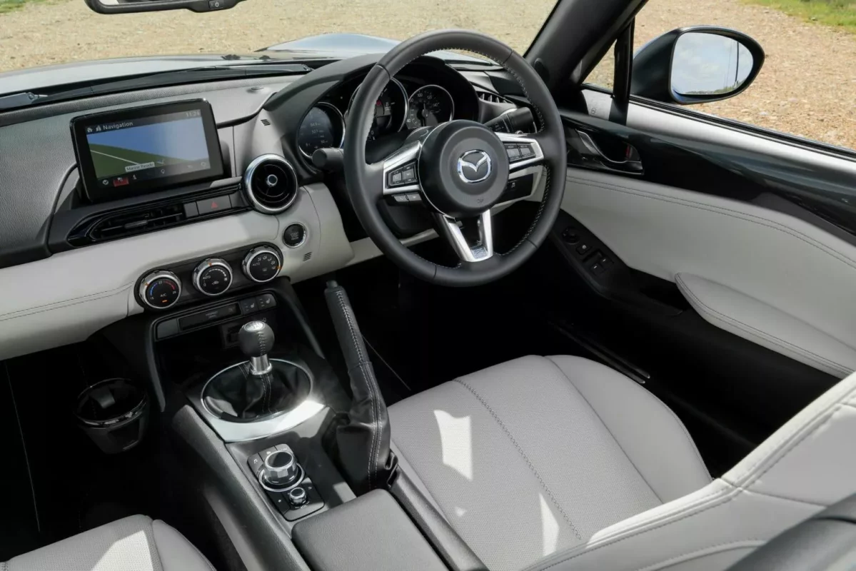 Особые штрихи, внесенные в MX-5 Kizuna, сохраняются и в салоне, где он оснащен кожаной обивкой Light Stone Nappa. Комплект 16-дюймовых легкосплавных дисков завершает образ.