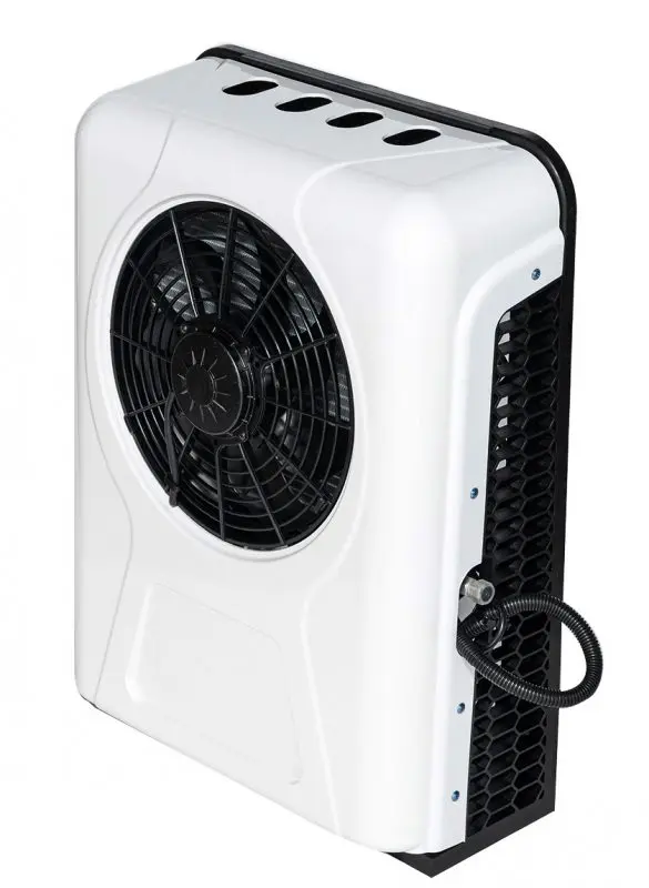 Данный кондиционер представляет собой полностью автономный блок содержащий внутри электрический компрессор и холодильный агрегат с воздушным охлаждением для кондиционирования воздуха в кабинах водителя транспортных средств. При установке настенного блока подключается только электропитание 24 Вольт, установка компрессора на двигатель авто не требуется.