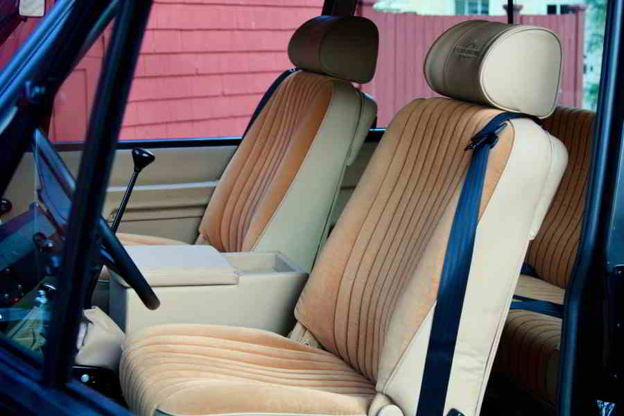 Сиденья сохранили свой ретро-китч, отделанные шафрановым велюром с отделкой паломино — последняя распространяется на бокс и двери. Интерьер оснащен голосовым устройством Alpine с одним din, которое, хотя и не является самым современным устройством в мире, обладает такими удобствами, как Bluetooth, Android control, потоковая передача Spotify и USB-порт. Alpine также является предпочтительной маркой для автомобильных динамиков и усилителя.