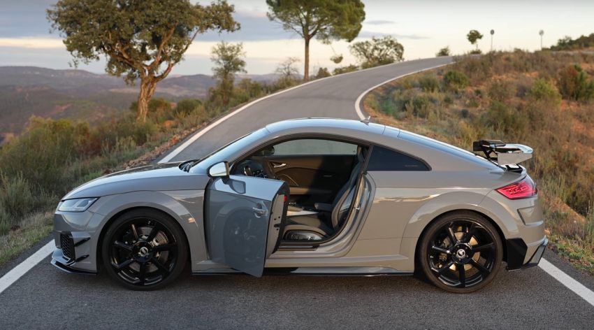 Доступный только в сером цвете Audi TT RS Nardo, имеет глянцевые черные вставки снаружи, изготовленные на заказ 20-дюймовые сплавы и новый Aerokit. Двухцветные спортивные сиденья RS с обивкой из наплавок и алькантары, которые можно найти внутри, специальная вышивка, черные коврики на полу, темно-серый дверной подлокотник и центральная консоль, рулевое колесо RS, обтянутое алькантарой, с маркировкой «10 часов», номерным значком, желтыми вставками и несколькими другими деталями. Это те вещи, которые отличают его от обычного TT RS.